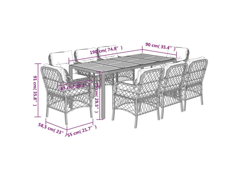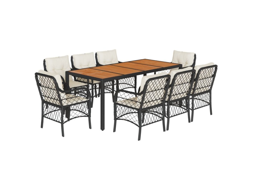 9dílný zahradní jídelní set s poduškami černý polyratan 3212041