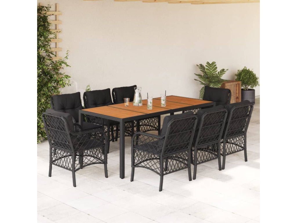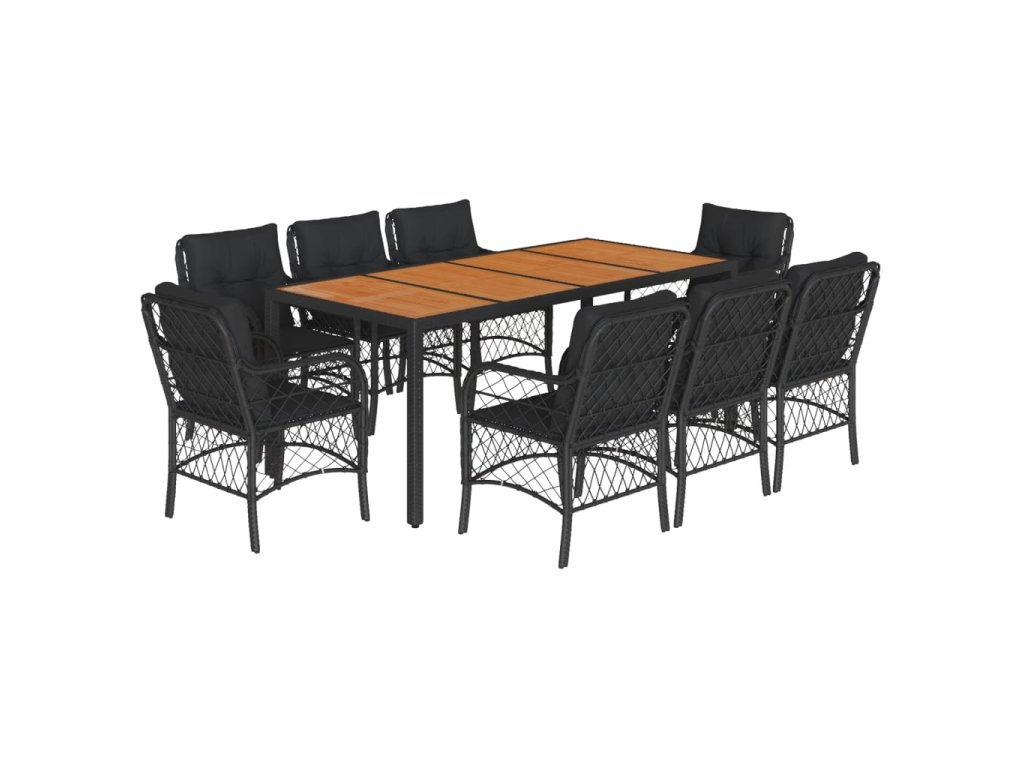 9dílný zahradní jídelní set s poduškami černý polyratan 3212047