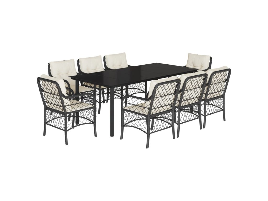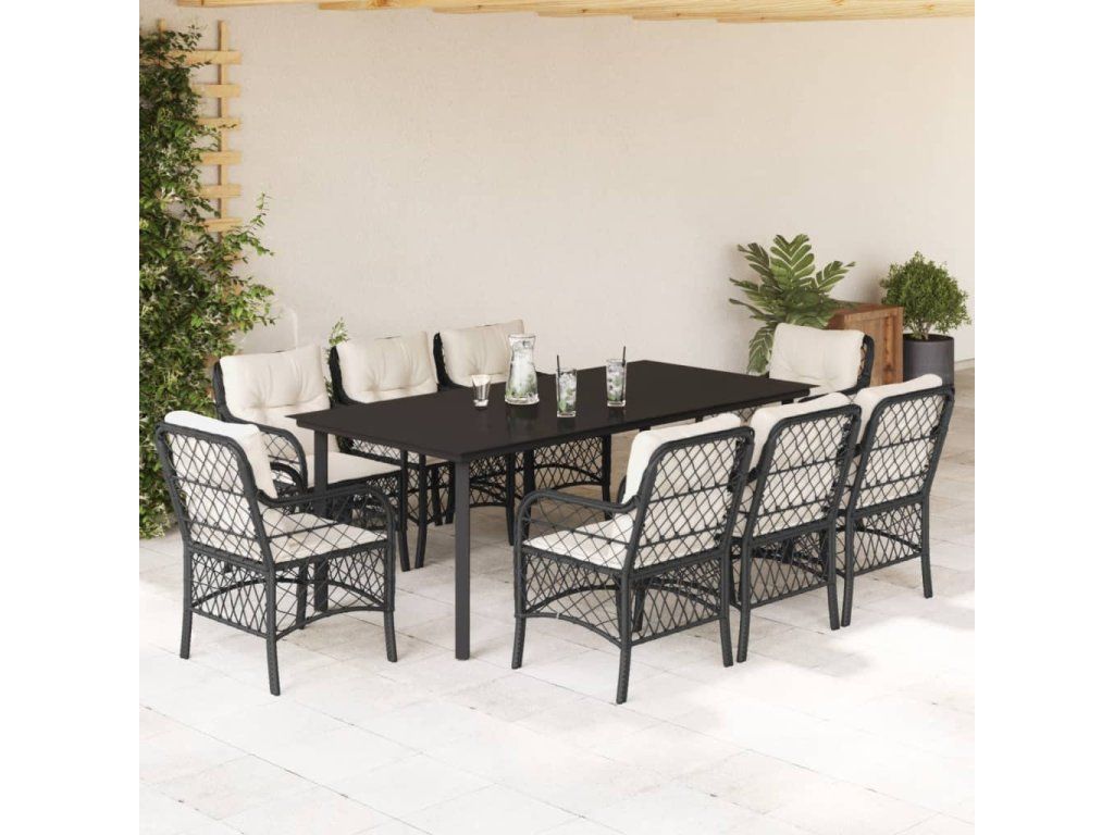 9dílný zahradní jídelní set s poduškami černý polyratan 3212095