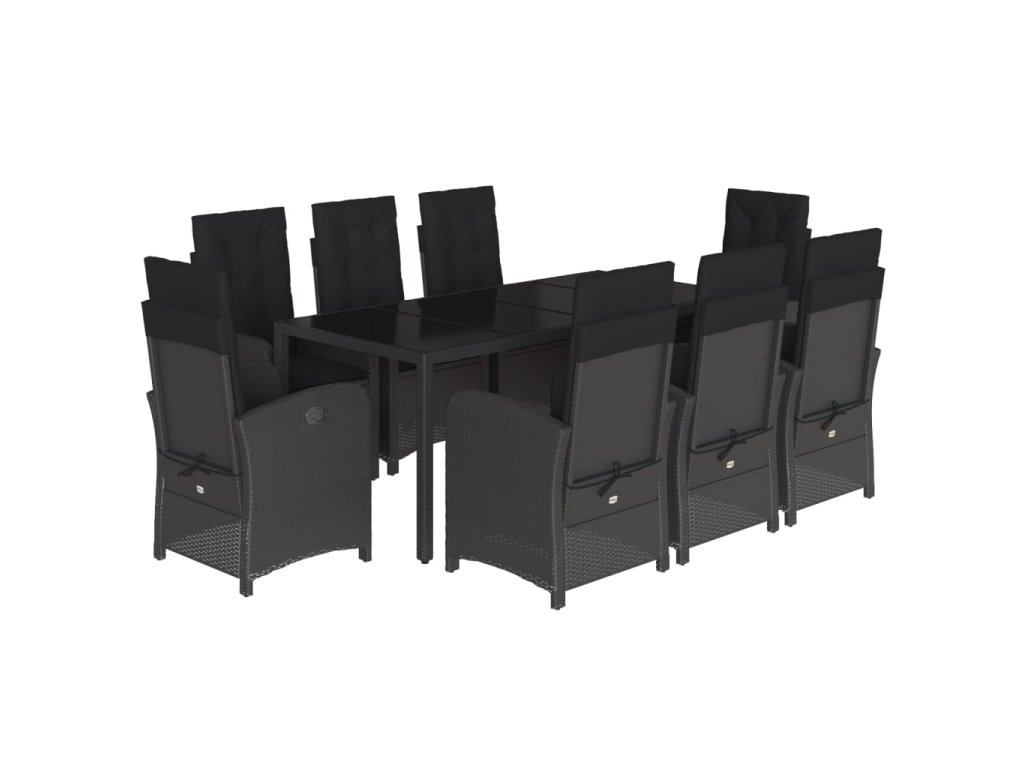 9dílný zahradní jídelní set s poduškami černý polyratan 3212211