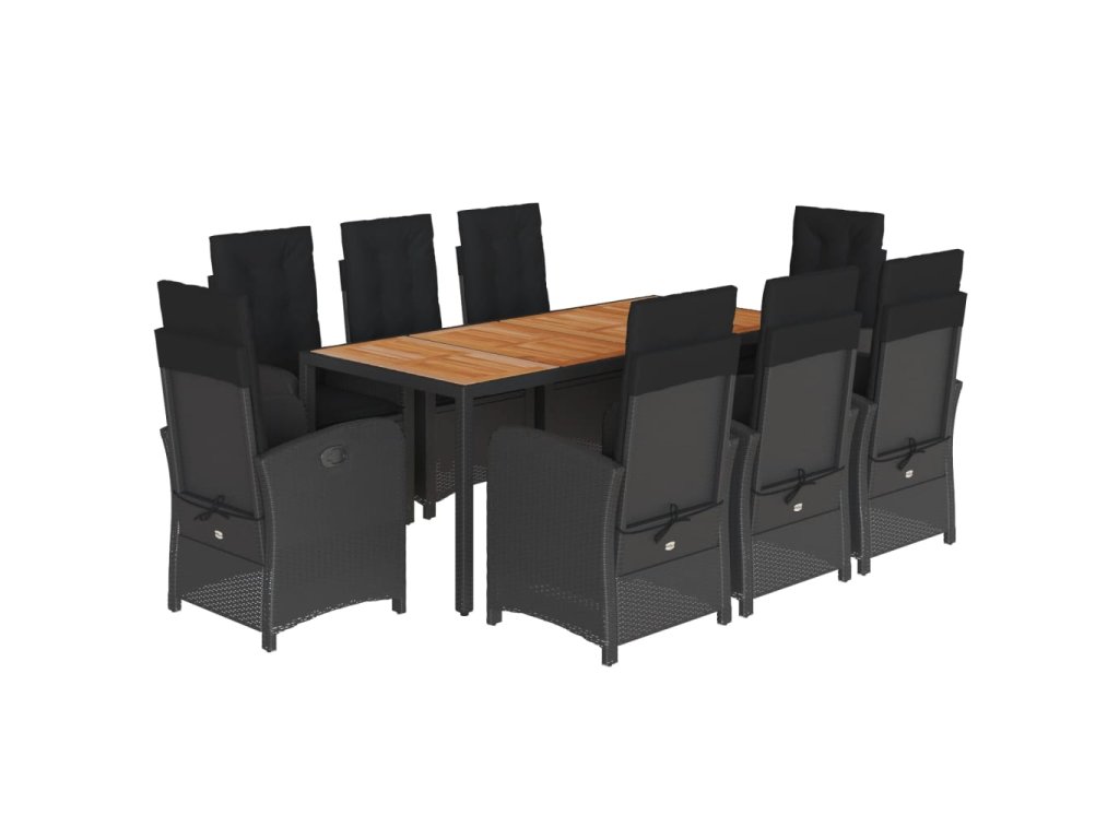 9dílný zahradní jídelní set s poduškami černý polyratan 3212237