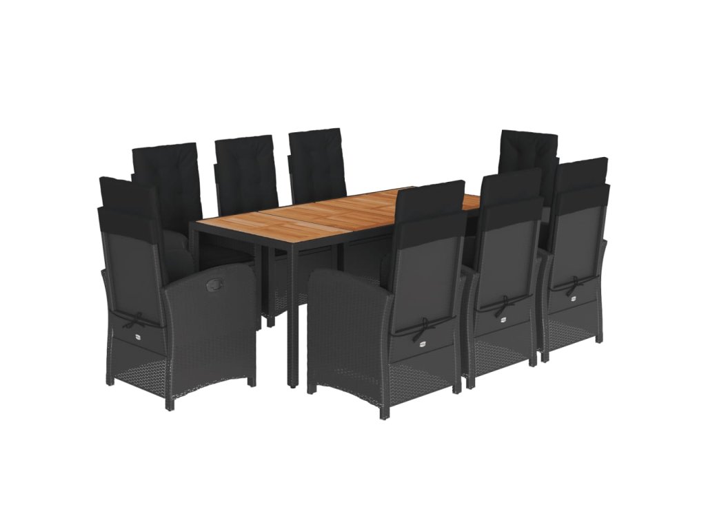 9dílný zahradní jídelní set s poduškami černý polyratan 3212238