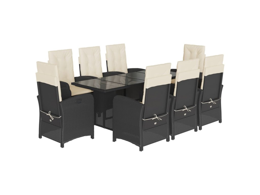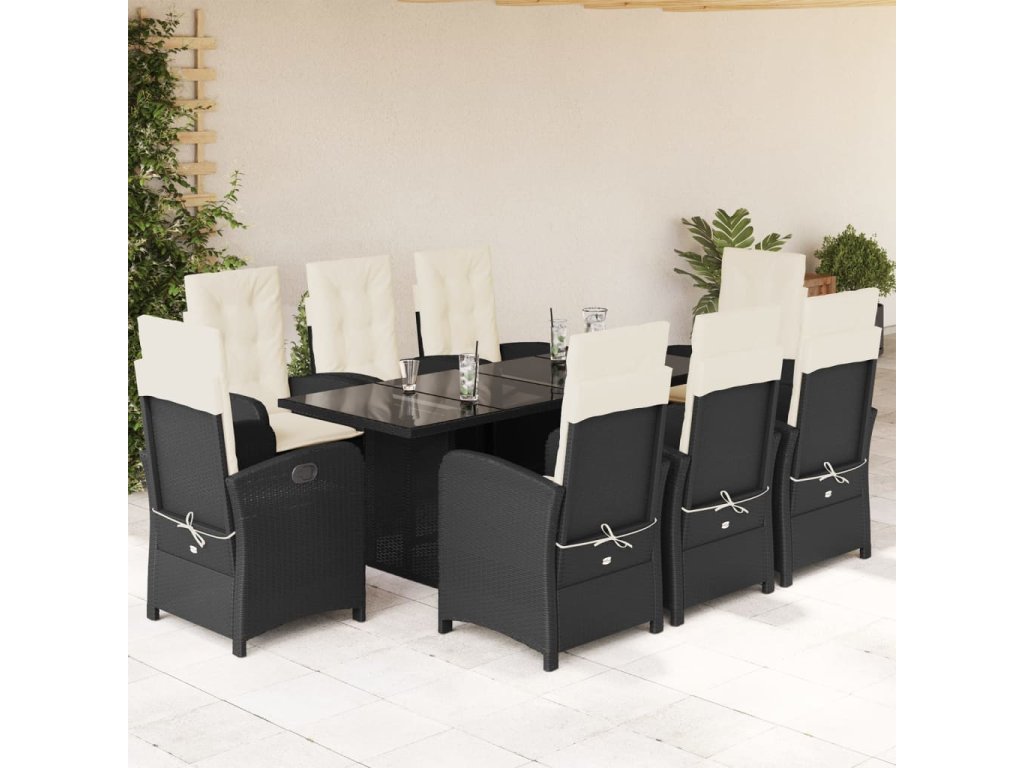 9dílný zahradní jídelní set s poduškami černý polyratan 3212250
