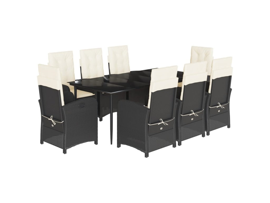 9dílný zahradní jídelní set s poduškami černý polyratan 3212298