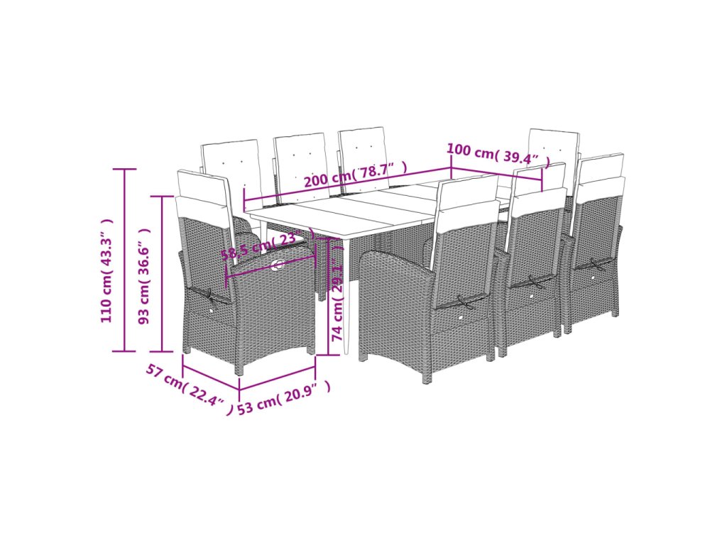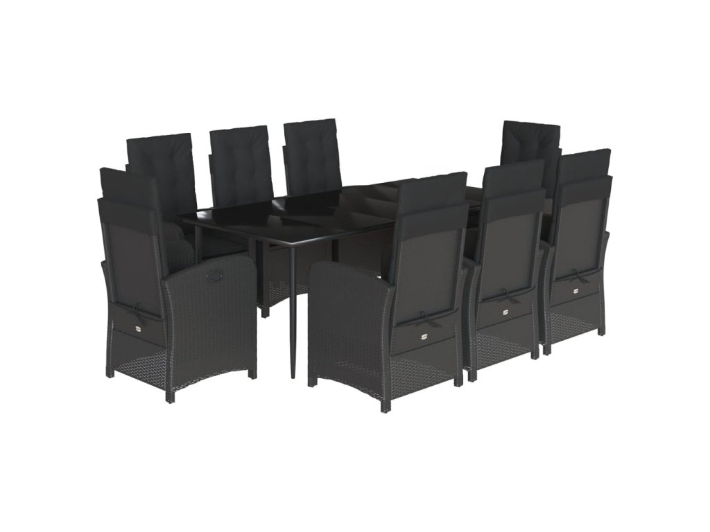 9dílný zahradní jídelní set s poduškami černý polyratan 3212319