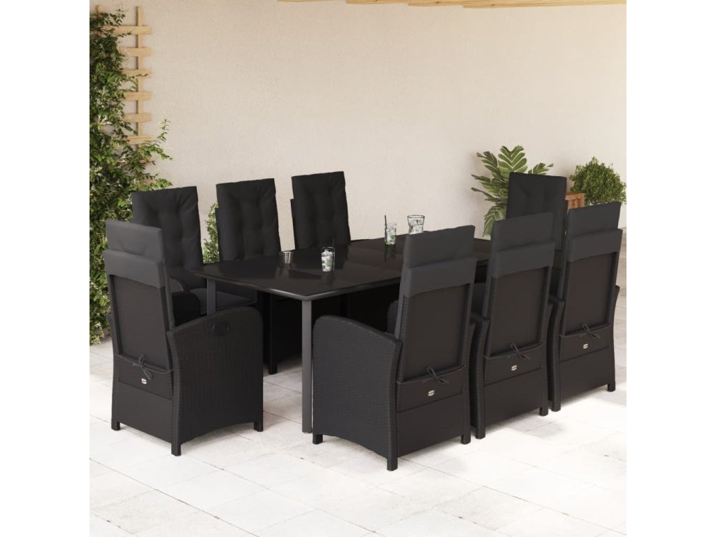 9dílný zahradní jídelní set s poduškami černý polyratan 3212329