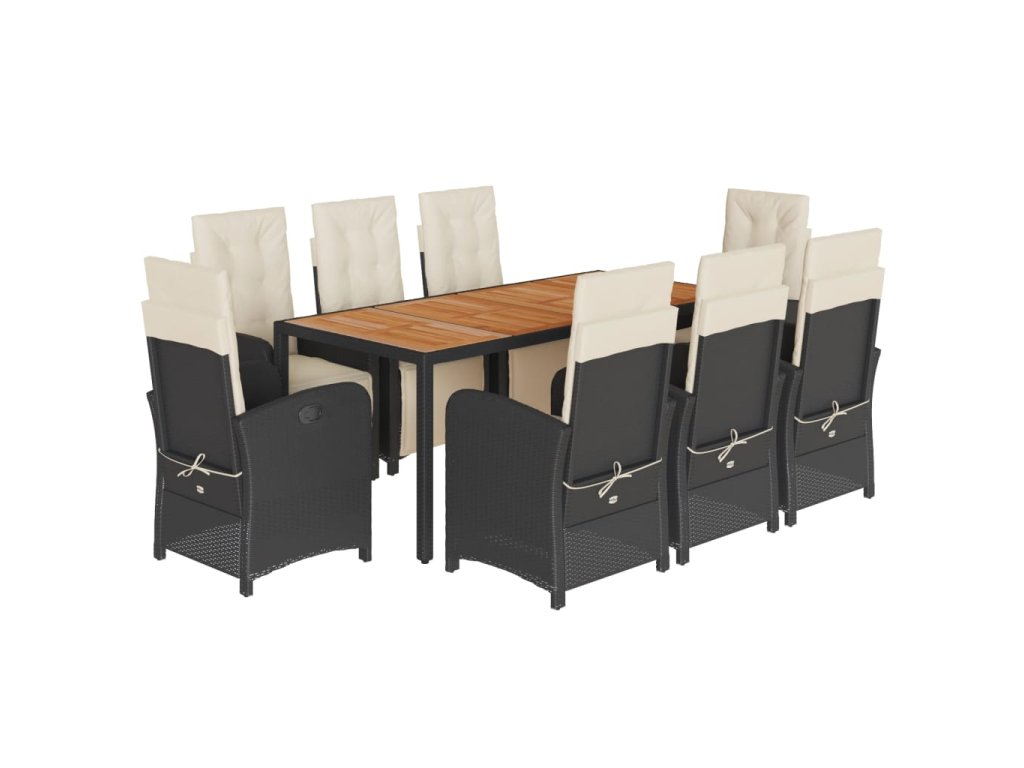 9dílný zahradní jídelní set s poduškami černý polyratan 3212473