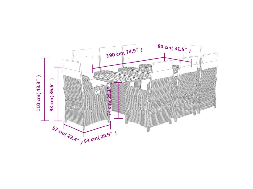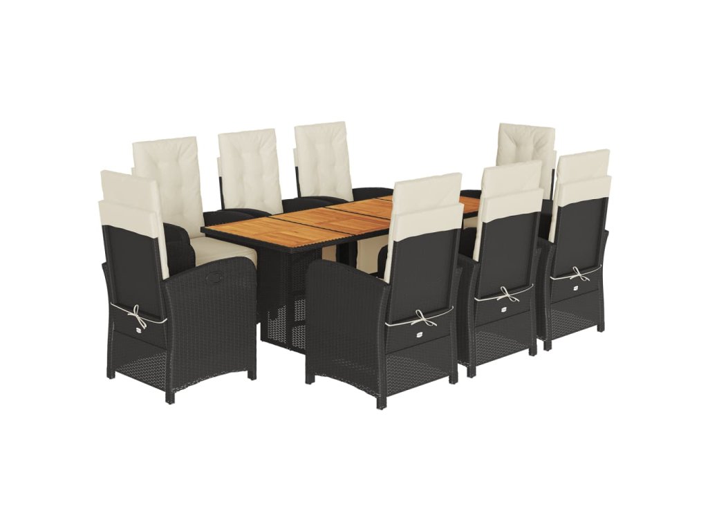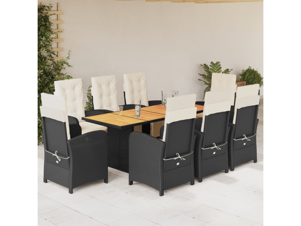 9dílný zahradní jídelní set s poduškami černý polyratan 3212503