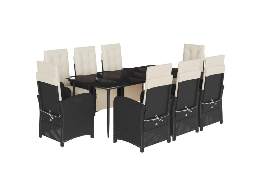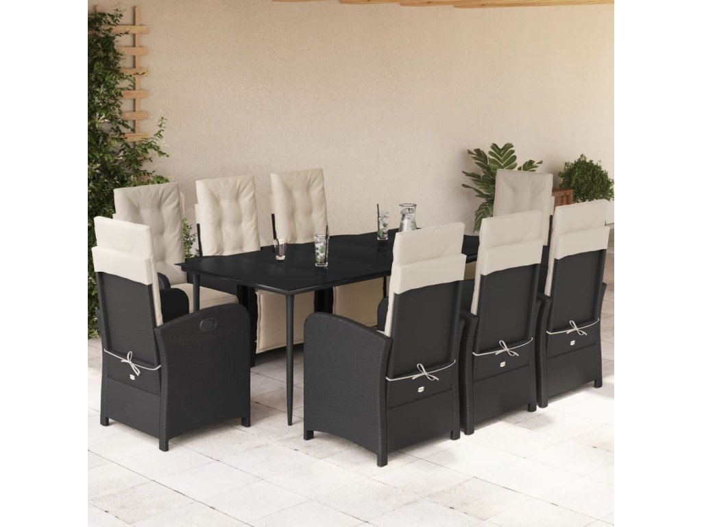 9dílný zahradní jídelní set s poduškami černý polyratan 3212520