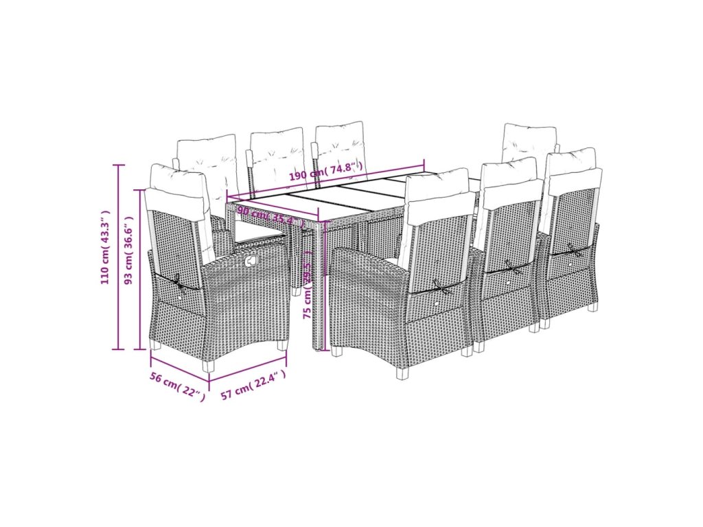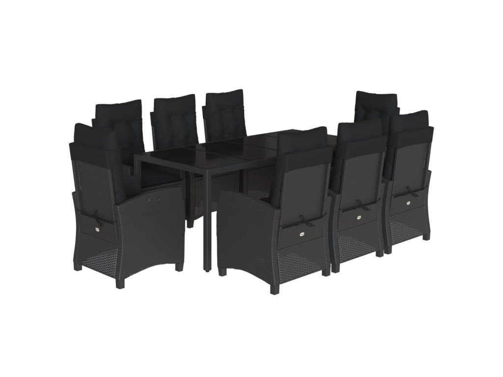 9dílný zahradní jídelní set s poduškami černý polyratan 3212643