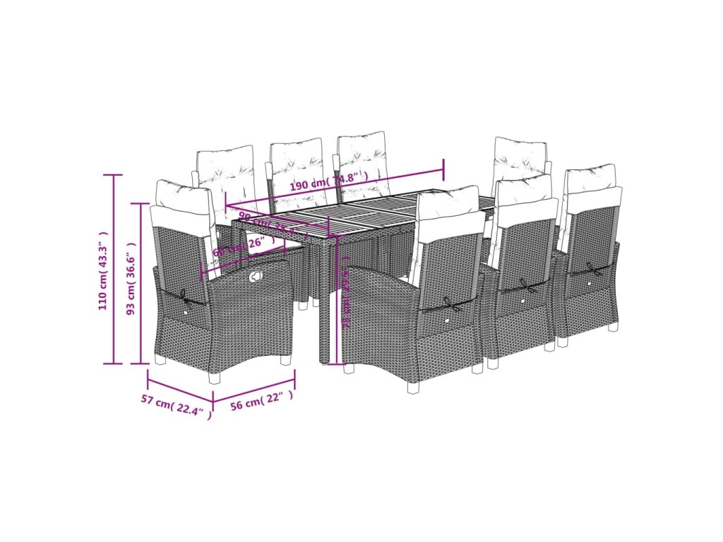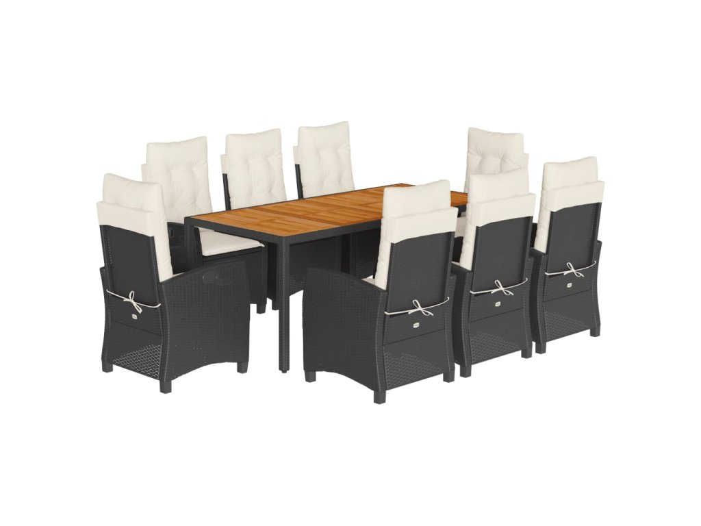 9dílný zahradní jídelní set s poduškami černý polyratan 3212661