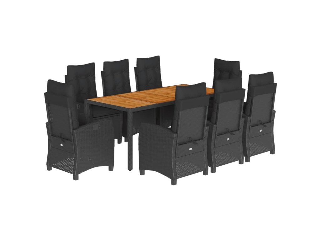9dílný zahradní jídelní set s poduškami černý polyratan 3212670