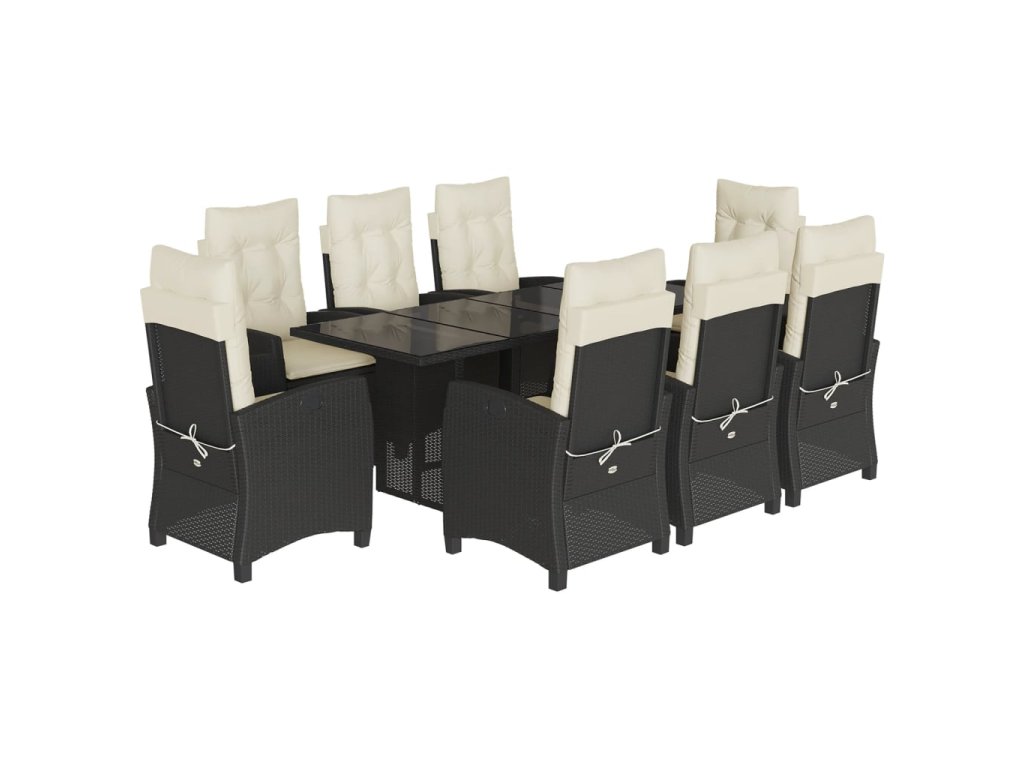 9dílný zahradní jídelní set s poduškami černý polyratan 3212682