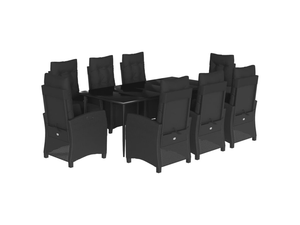 9dílný zahradní jídelní set s poduškami černý polyratan 3212966