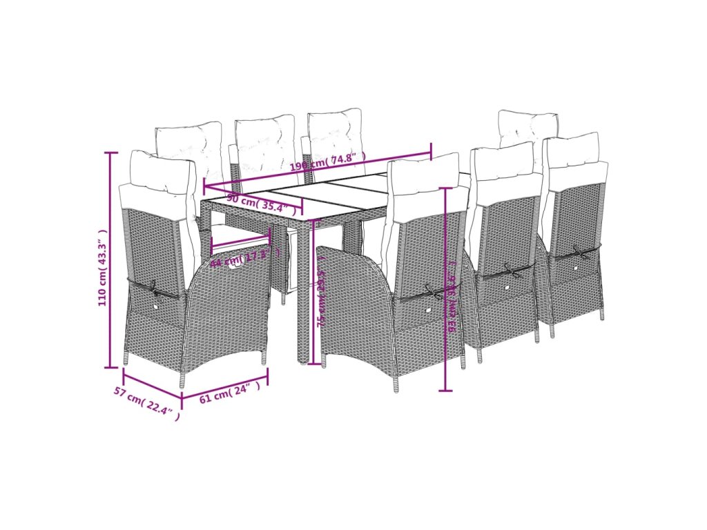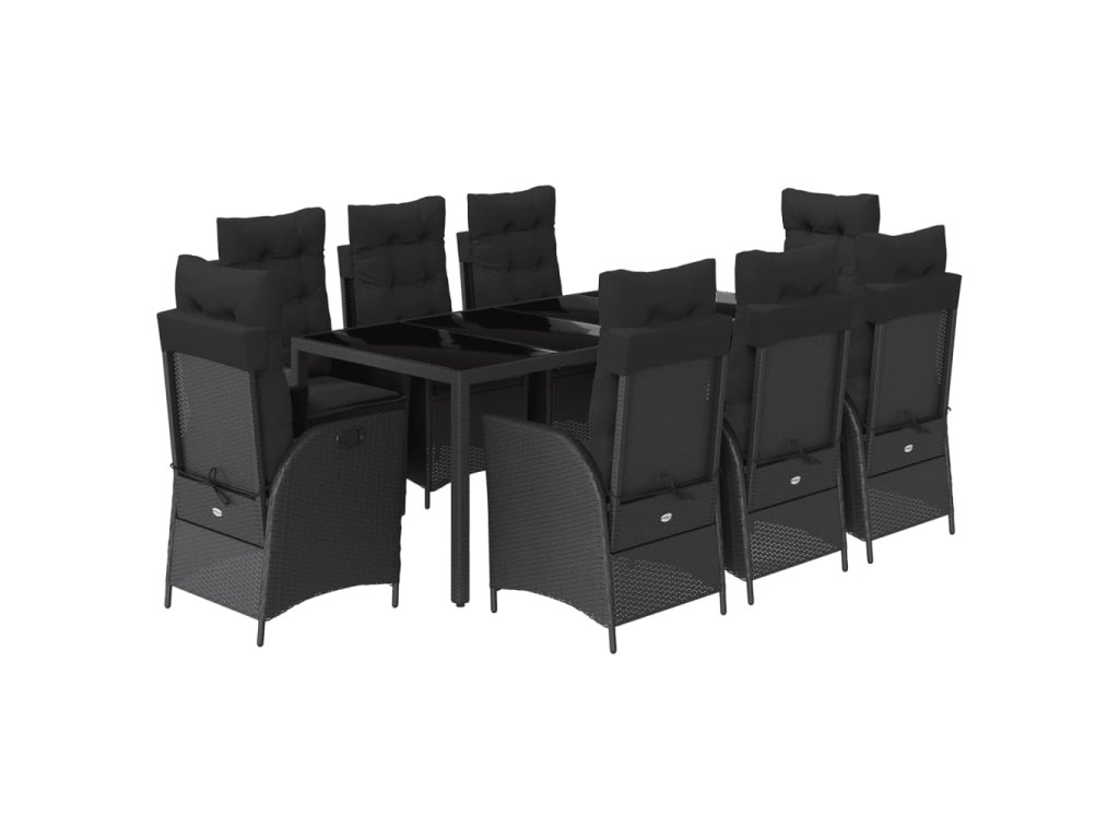 9dílný zahradní jídelní set s poduškami černý polyratan 3213075