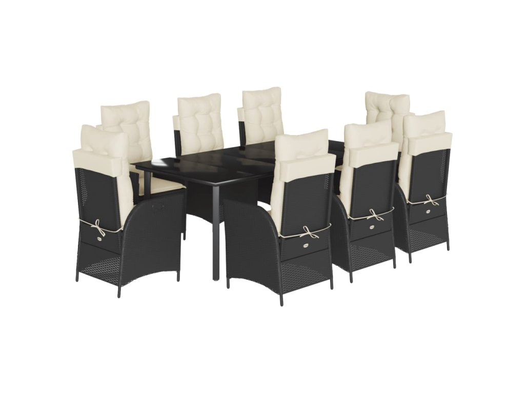 9dílný zahradní jídelní set s poduškami černý polyratan 3213173