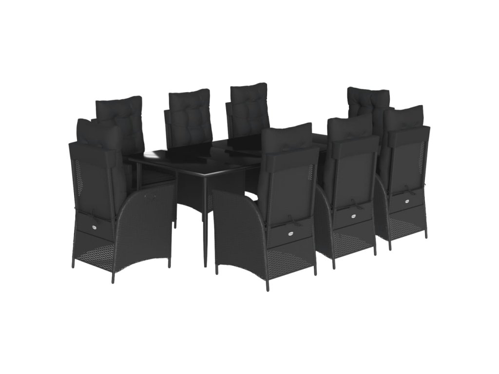 9dílný zahradní jídelní set s poduškami černý polyratan 3213183