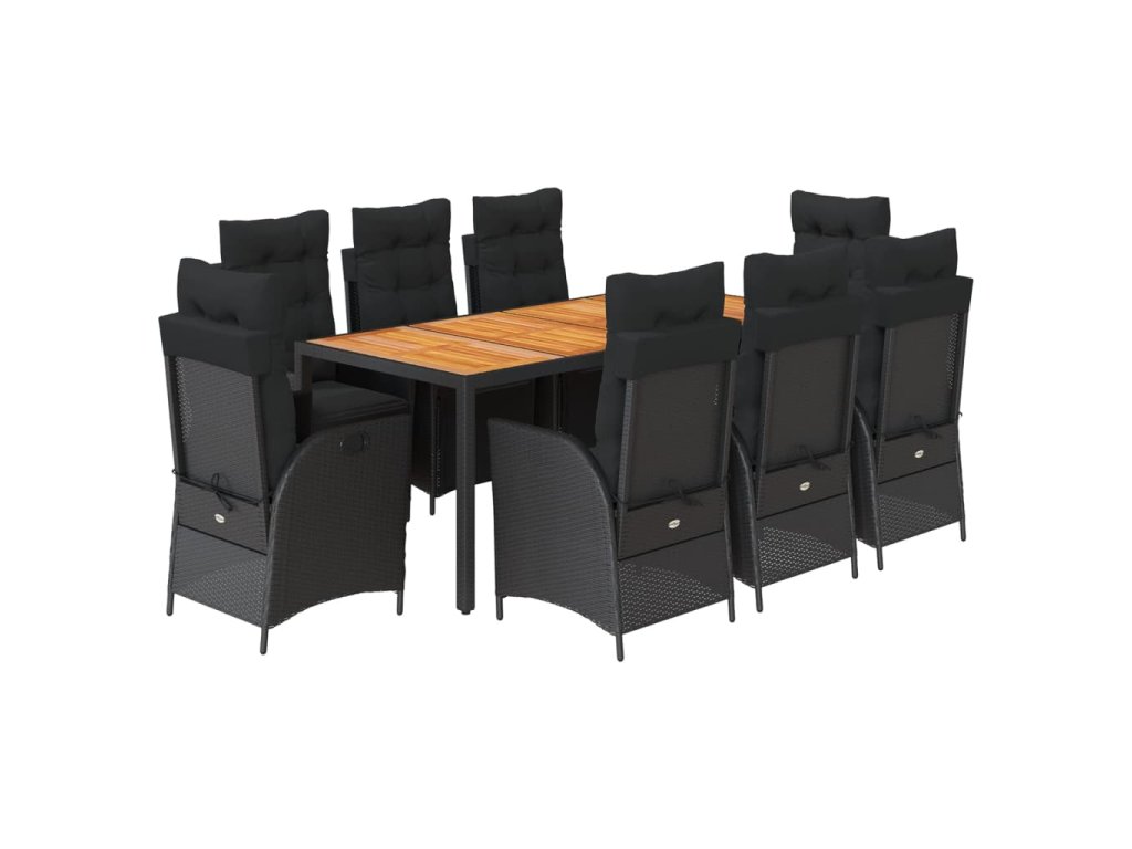 9dílný zahradní jídelní set s poduškami černý polyratan 3213343