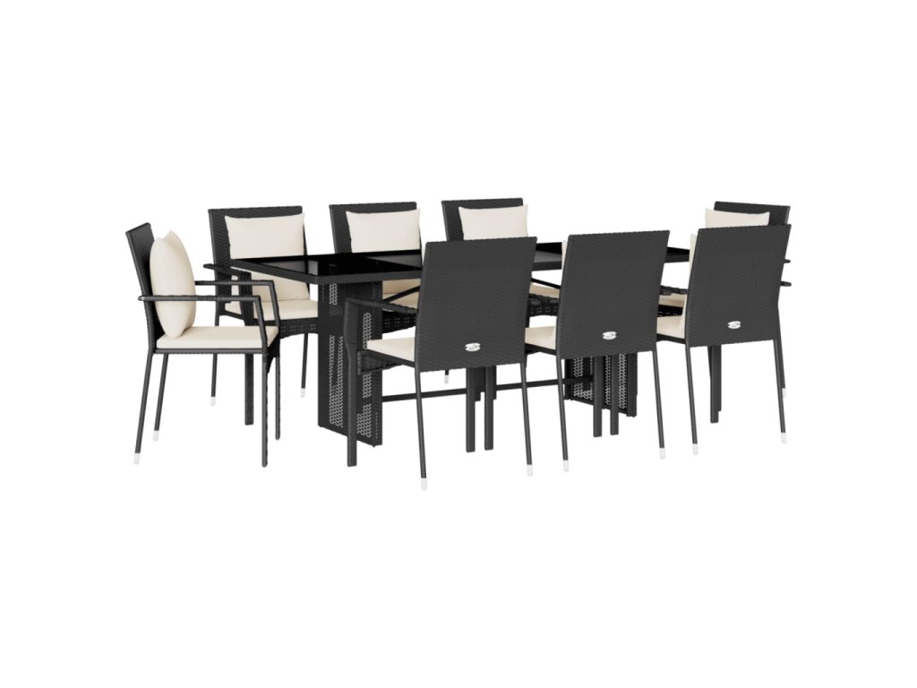 9dílný zahradní jídelní set s poduškami černý polyratan 3213491