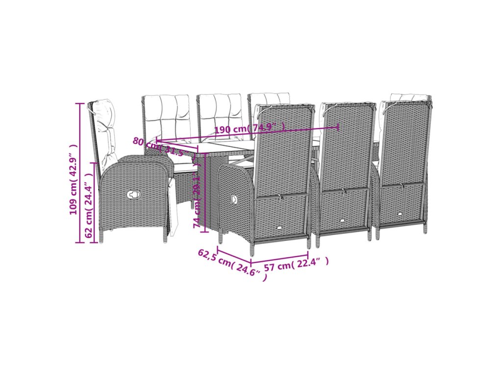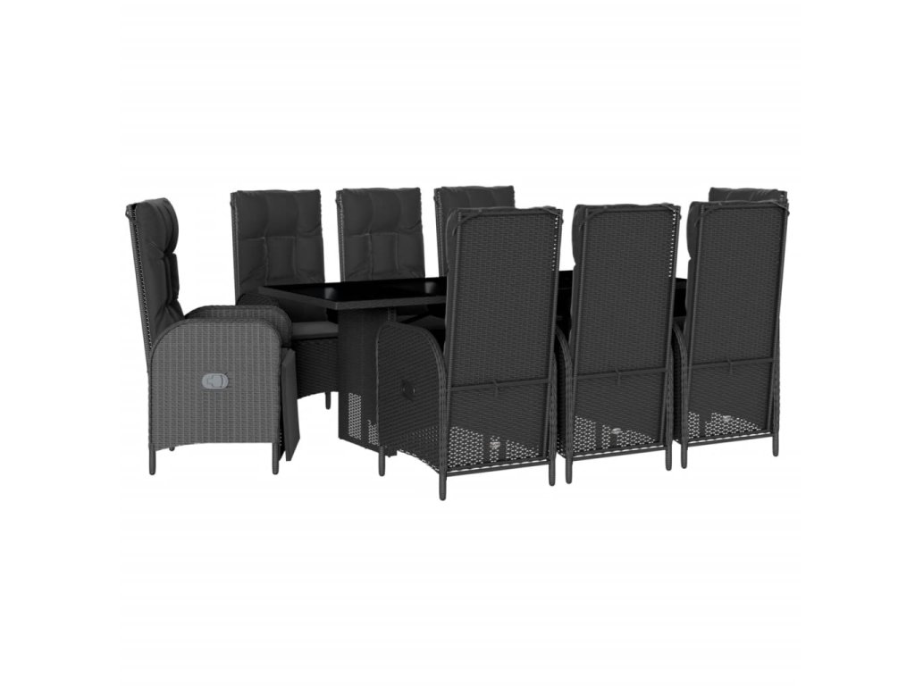 9dílný zahradní jídelní set s poduškami černý polyratan 3213526