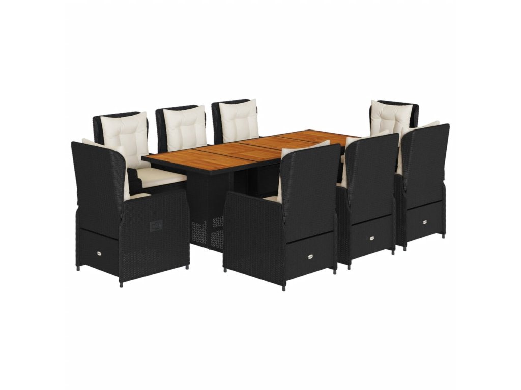 9dílný zahradní jídelní set s poduškami černý polyratan 3262780