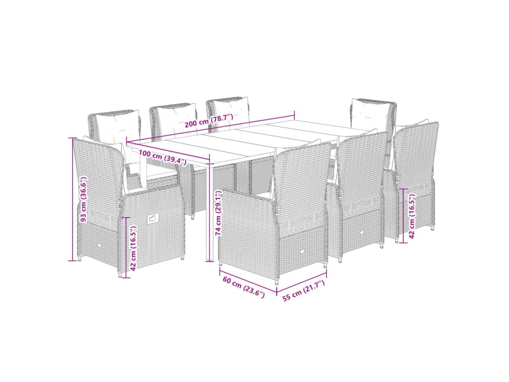 9dílný zahradní jídelní set s poduškami černý polyratan 3262970