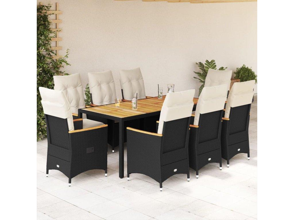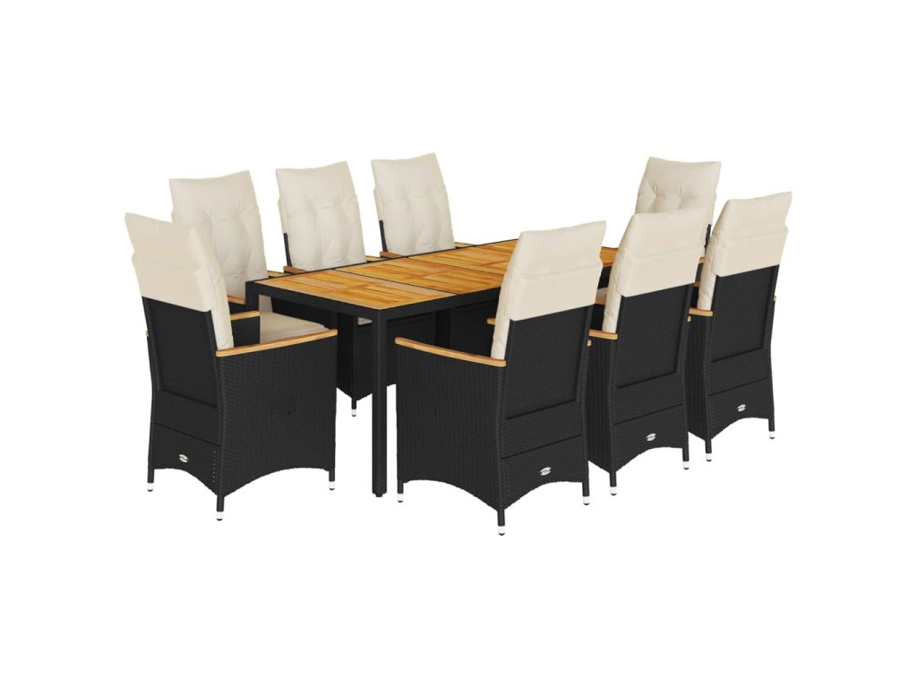 9dílný zahradní jídelní set s poduškami černý polyratan 3276838