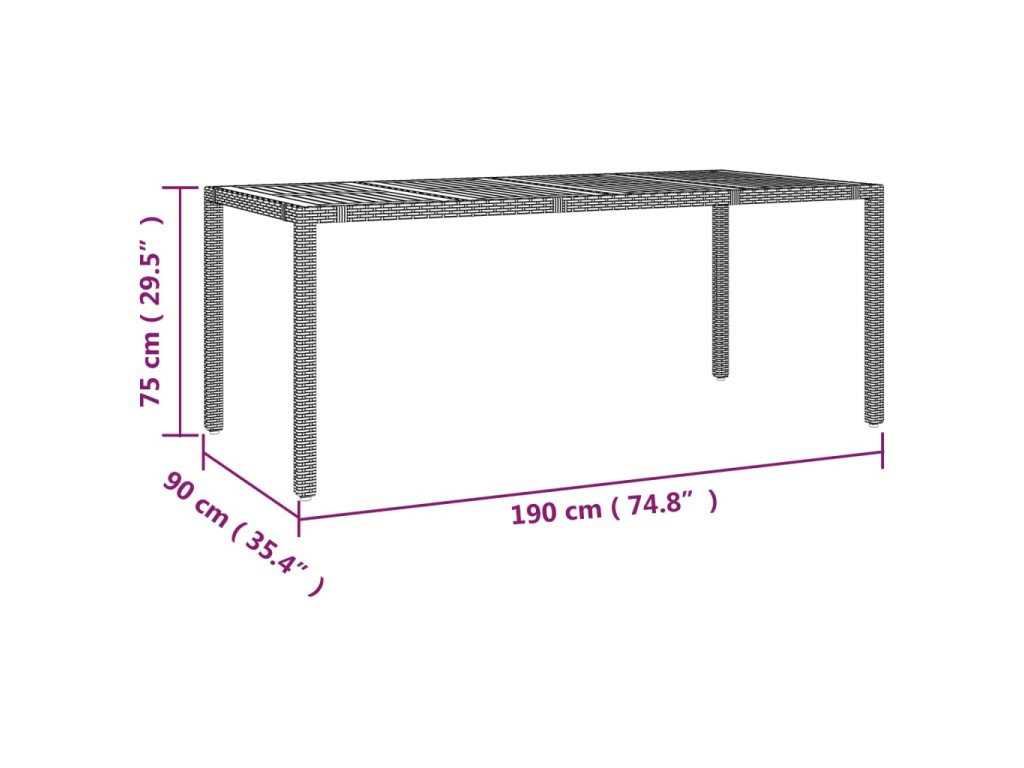 - Materiál: PE ratan, práškově lakovaná ocel, masivní akáciové dřevo s olejovou povrchovou úpravou