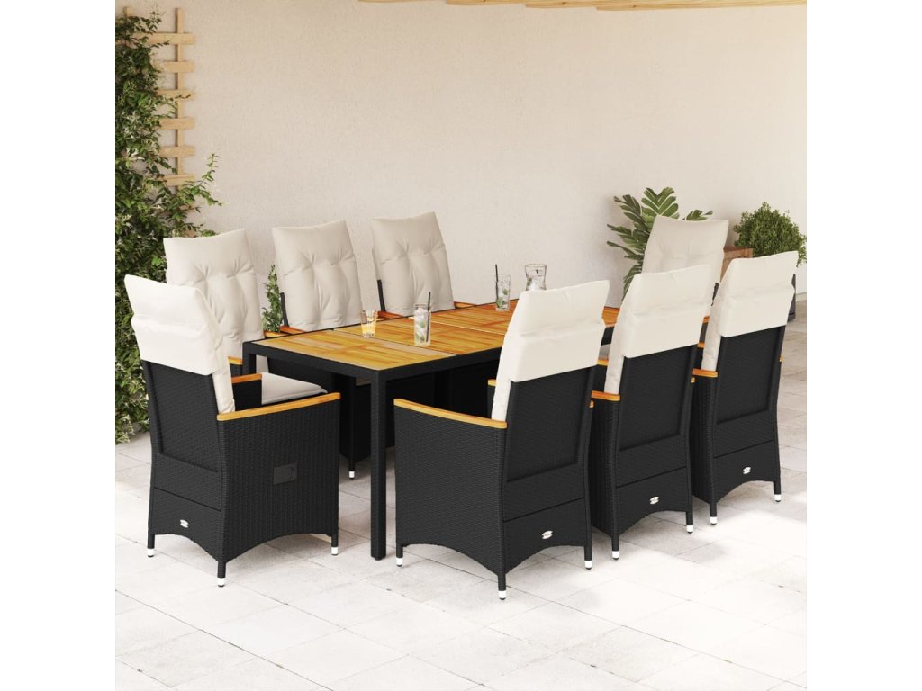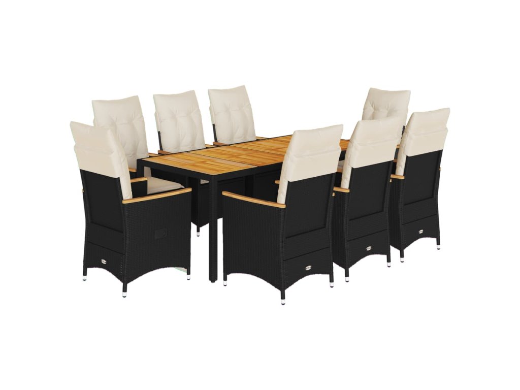 9dílný zahradní jídelní set s poduškami černý polyratan 3276839