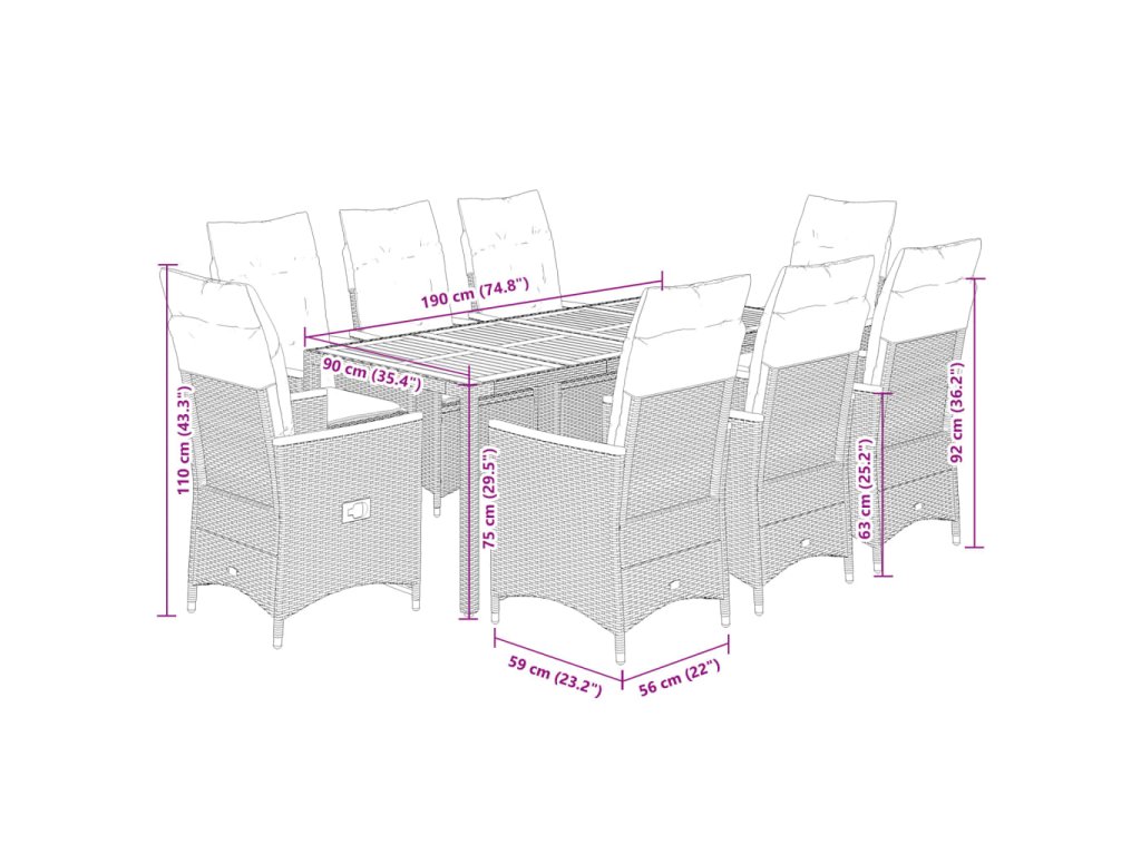 - Materiál: PE ratan, ocel, masivní akáciové dřevo s olejovou povrchovou úpravou