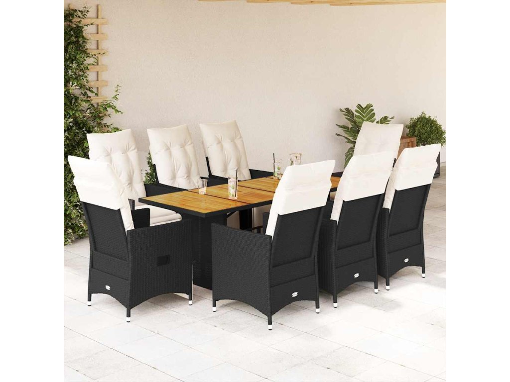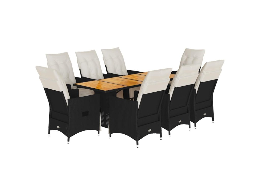 9dílný zahradní jídelní set s poduškami černý polyratan 3276862