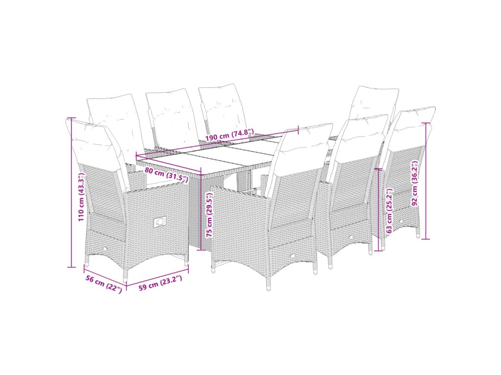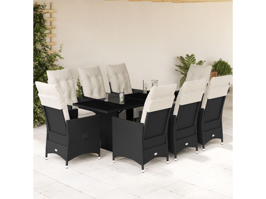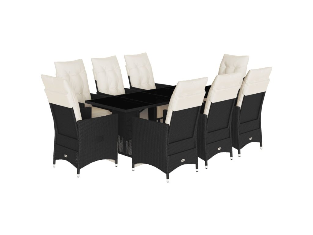 9dílný zahradní jídelní set s poduškami černý polyratan 3276870