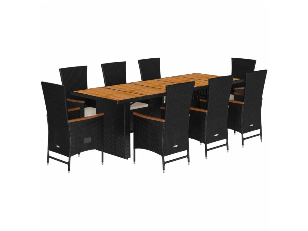 9dílný zahradní jídelní set s poduškami černý polyratan 3277524