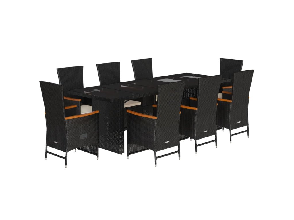 9dílný zahradní jídelní set s poduškami černý polyratan 3277535