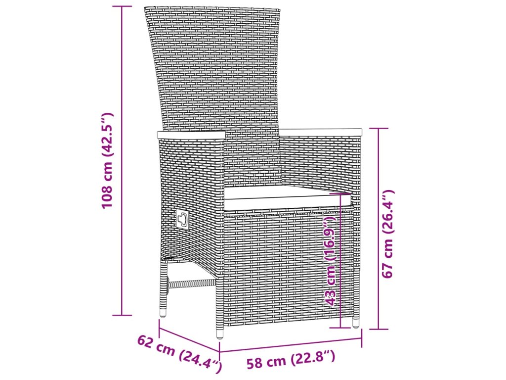 - Rozměry sezení: 58 x 62 x 108 cm (Š x H x V)