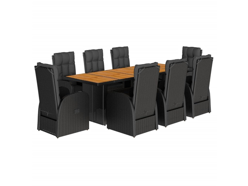 9dílný zahradní jídelní set s poduškami černý polyratan 3277630