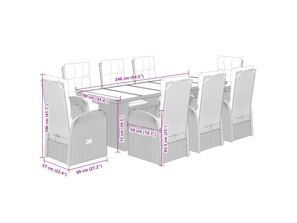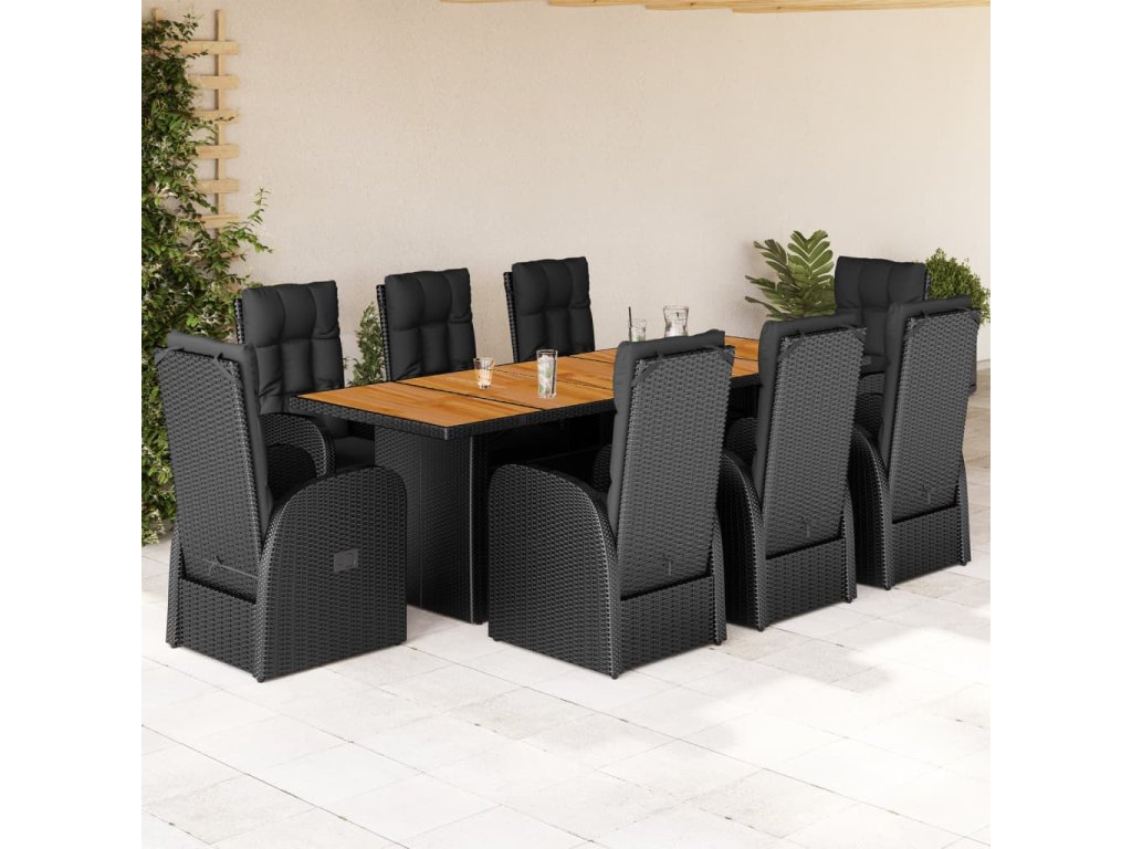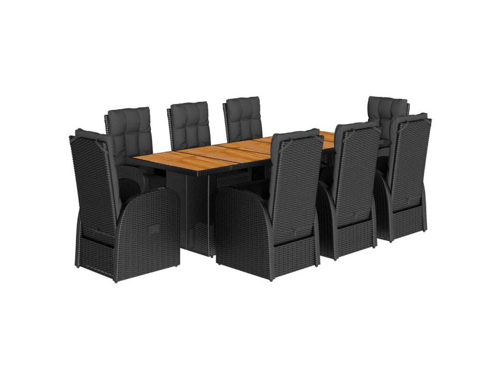 9dílný zahradní jídelní set s poduškami černý polyratan 3277635