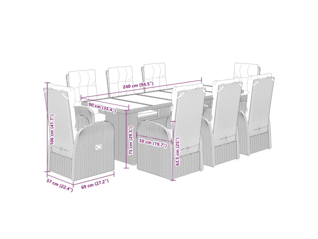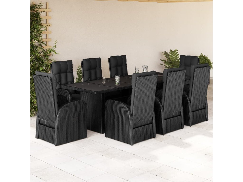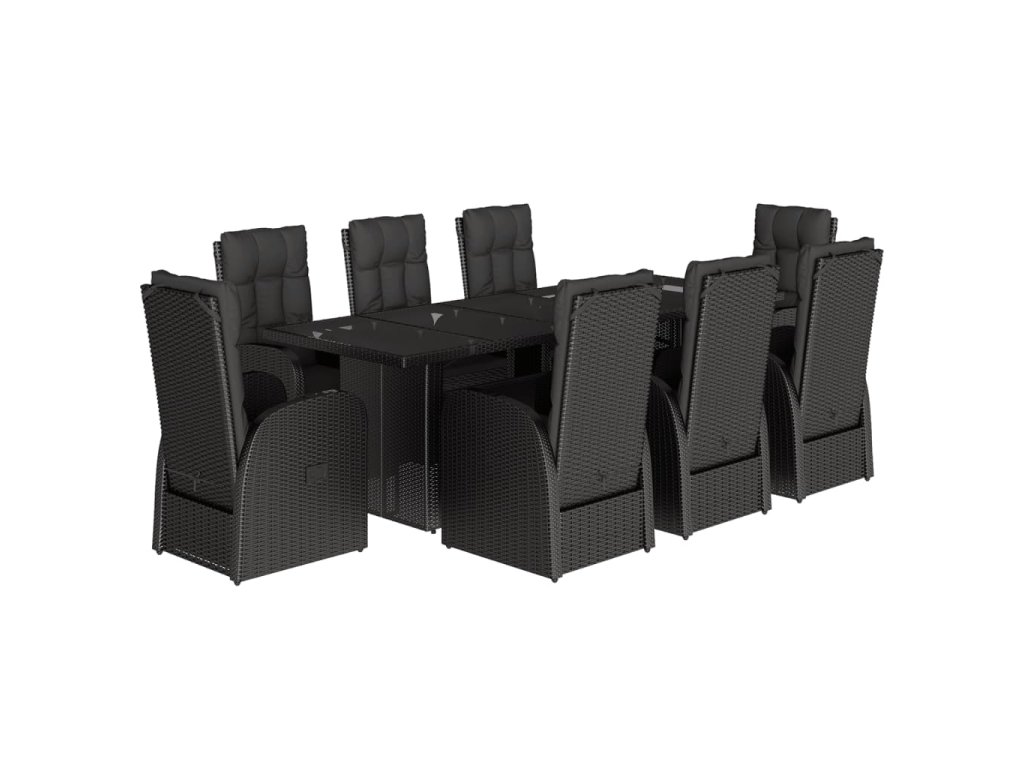 9dílný zahradní jídelní set s poduškami černý polyratan 3277638