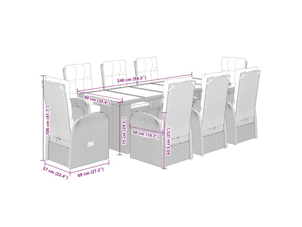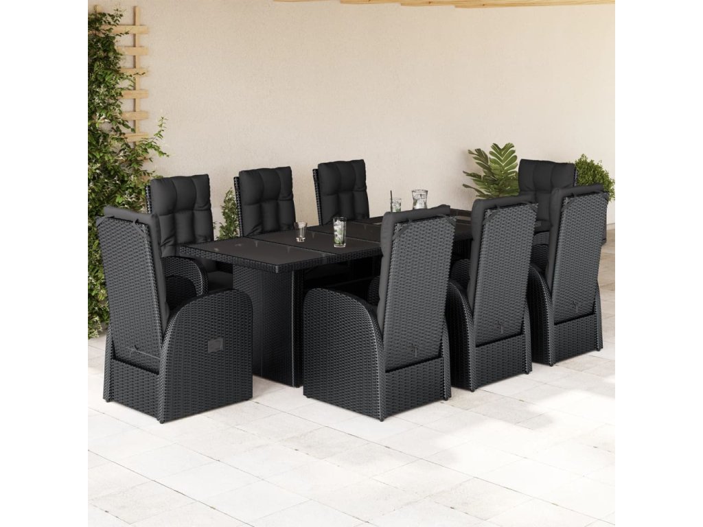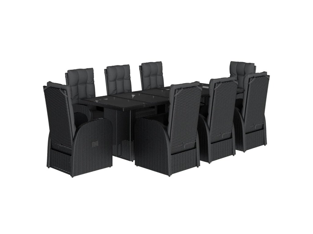 9dílný zahradní jídelní set s poduškami černý polyratan 3277643