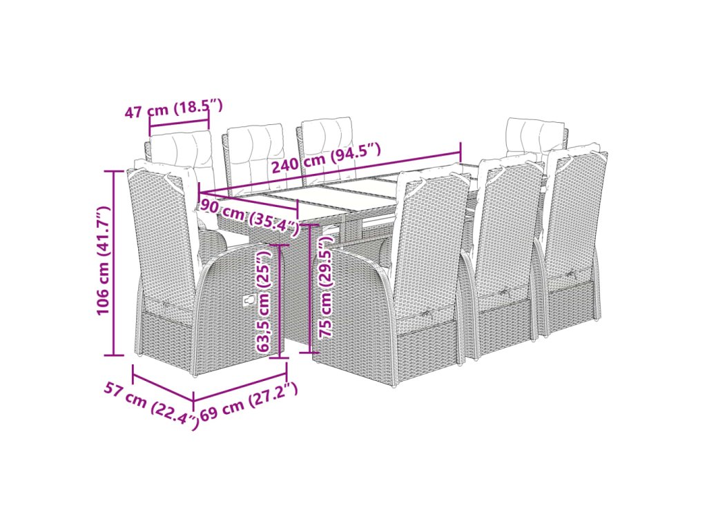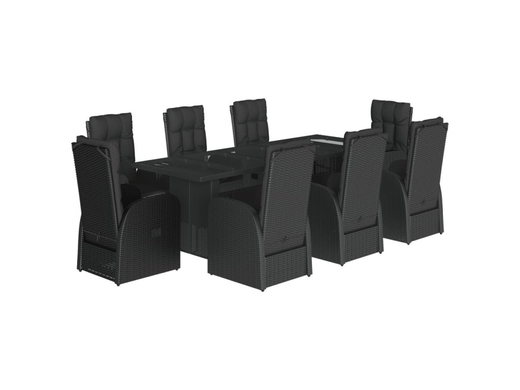 9dílný zahradní jídelní set s poduškami černý polyratan 3277654