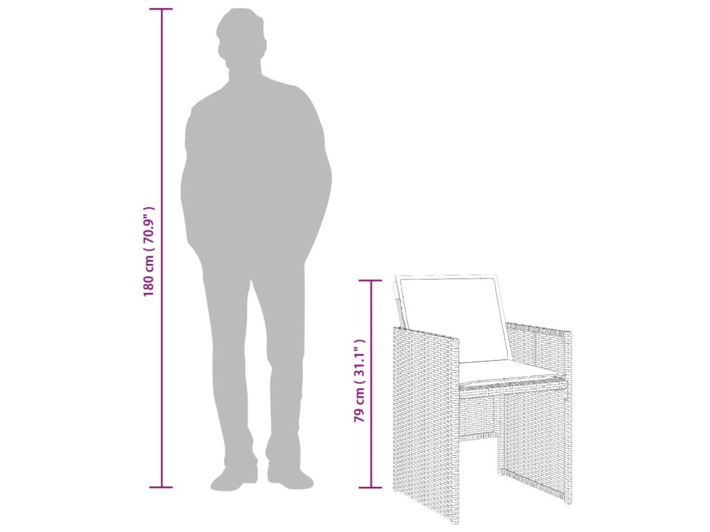 - Odolný materiál: PE ratan neboli polyratan je pevný syntetický materiál s nízkými nároky na údržbu, který vypadá jako přírodní ratan. Je lehký, snadno se čistí a běžně se používá pro venkovní nábytek díky své dlouhé životnosti a odolnosti vůči povětrnostním vlivům.