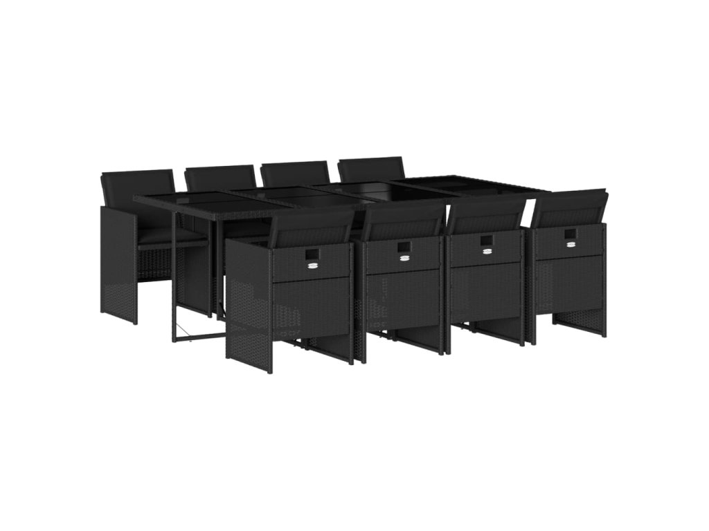 9dílný zahradní jídelní set s poduškami černý polyratan 3277686