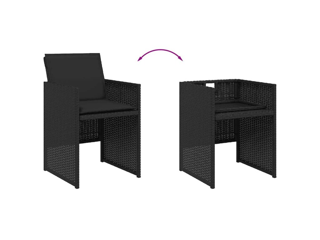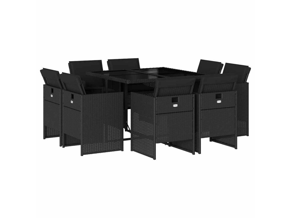 9dílný zahradní jídelní set s poduškami černý polyratan 3277782