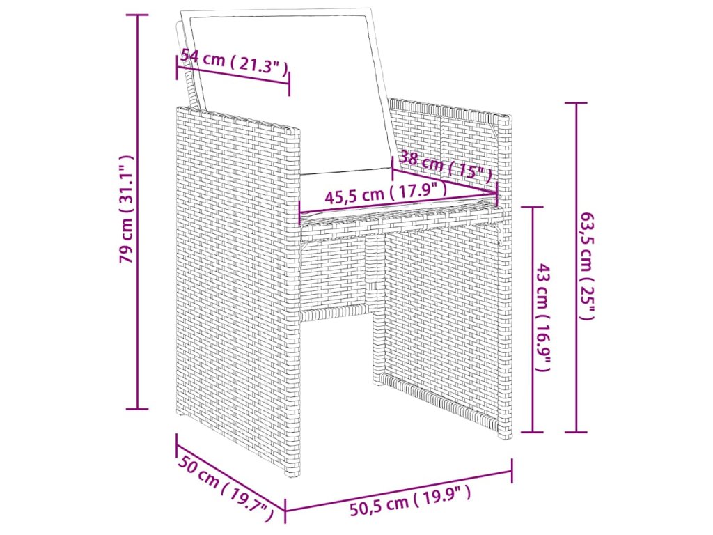 - Materiál: PE ratan, práškově lakovaná ocel, masivní akáciové dřevo s olejovou povrchovou úpravou