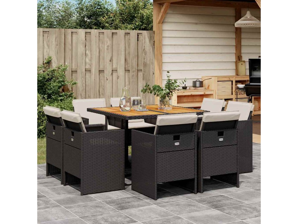 9dílný zahradní jídelní set s poduškami černý polyratan 3277790