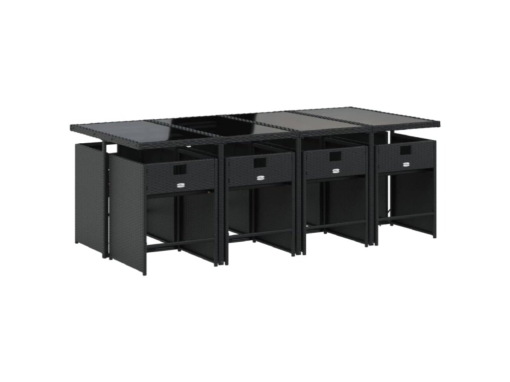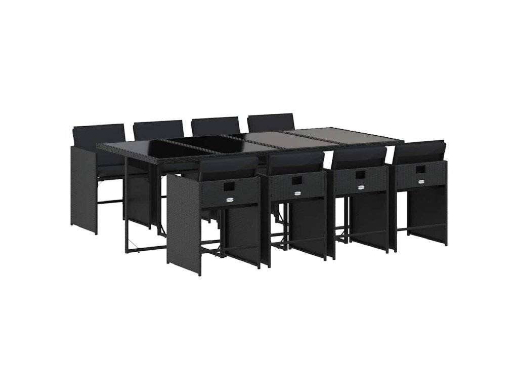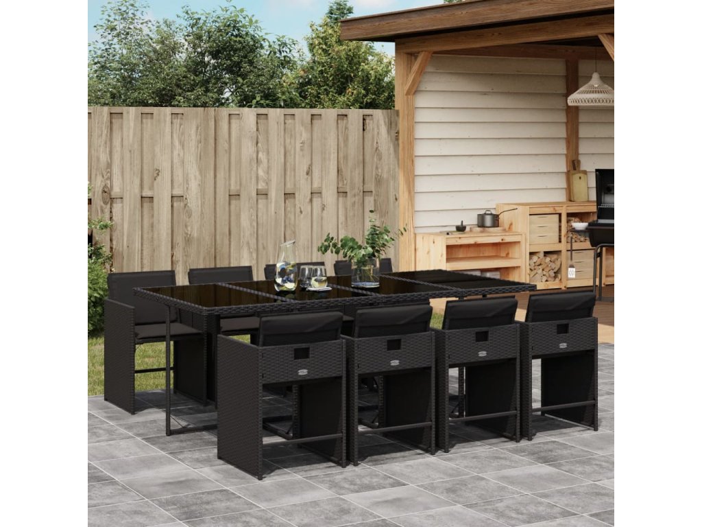 9dílný zahradní jídelní set s poduškami černý polyratan 3277866