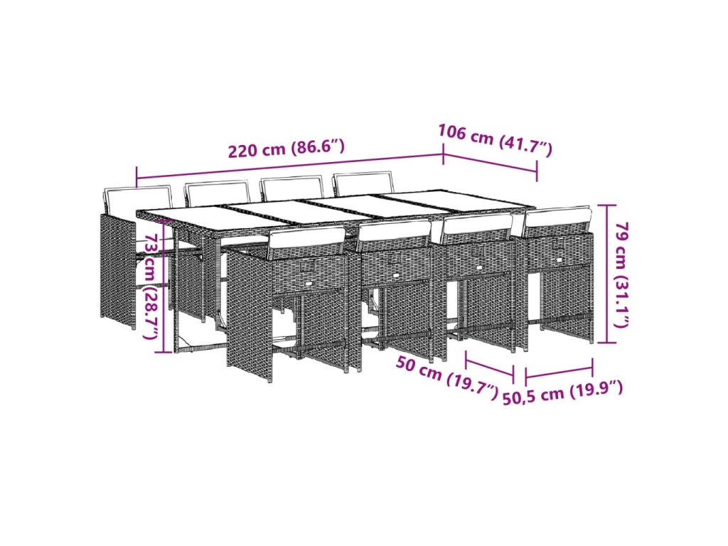 - Rozměry: 220 x 106 x 73 cm (D x Š x V)