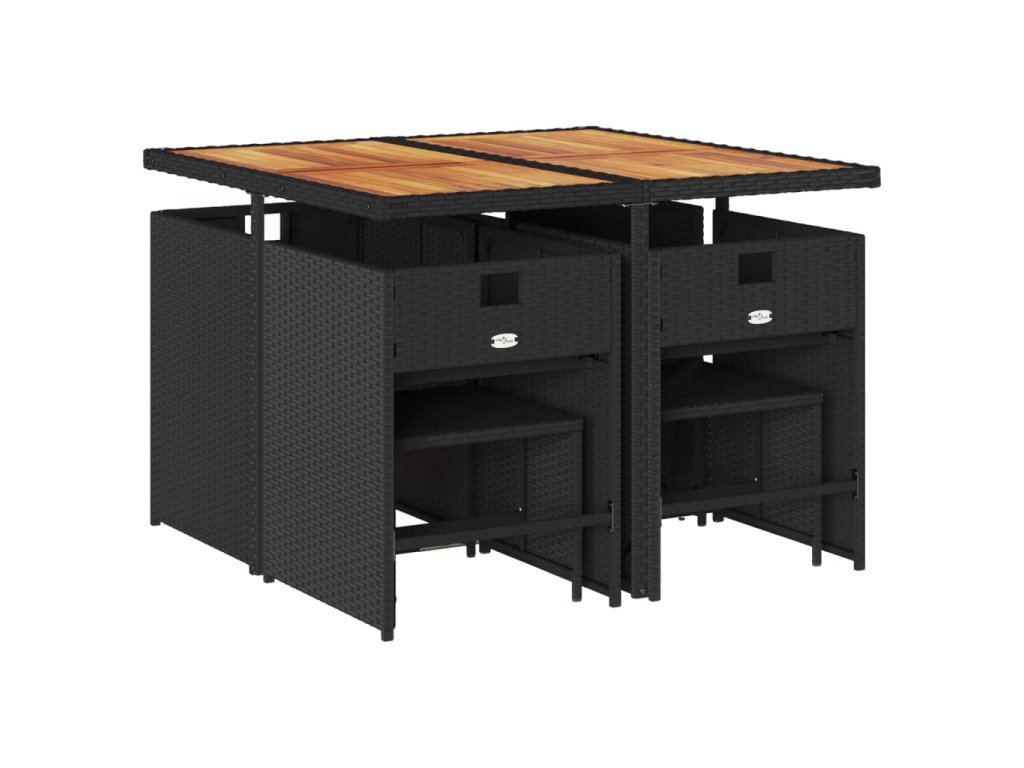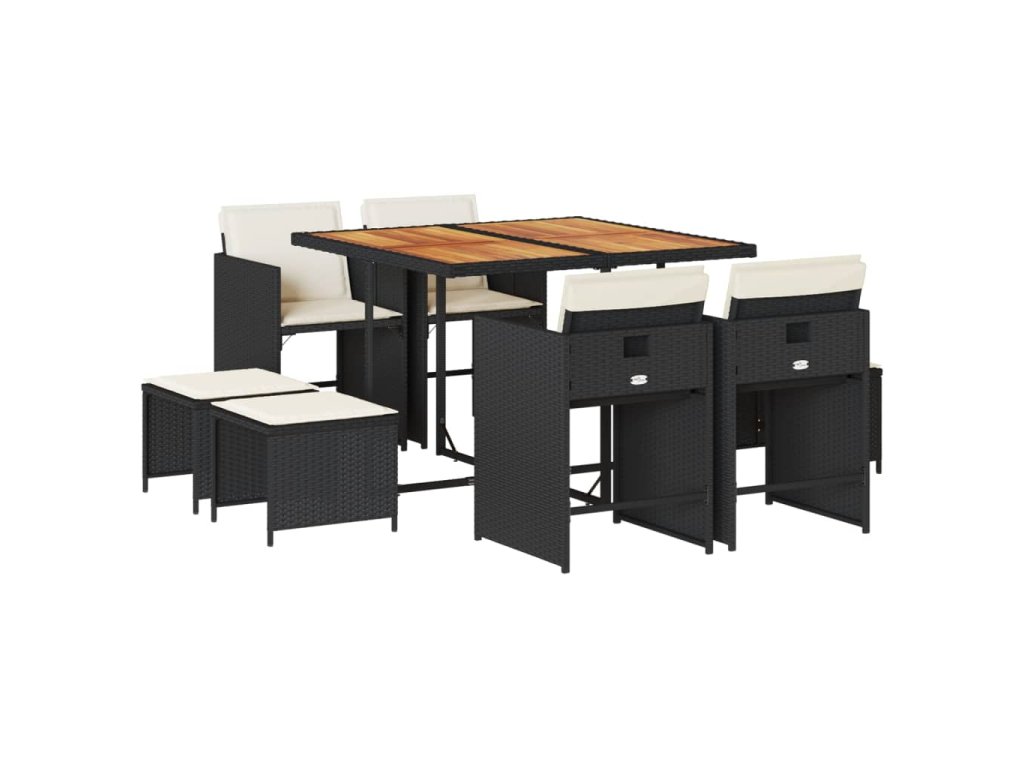 9dílný zahradní jídelní set s poduškami černý polyratan 3277910
