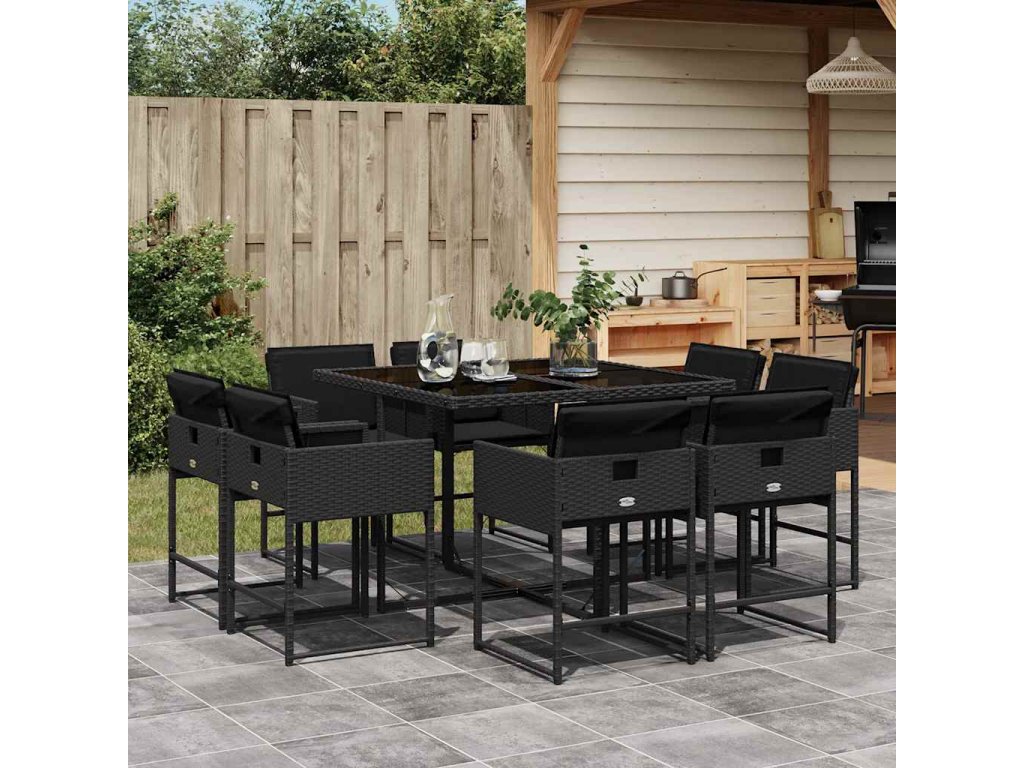 9dílný zahradní jídelní set s poduškami černý polyratan 3278142