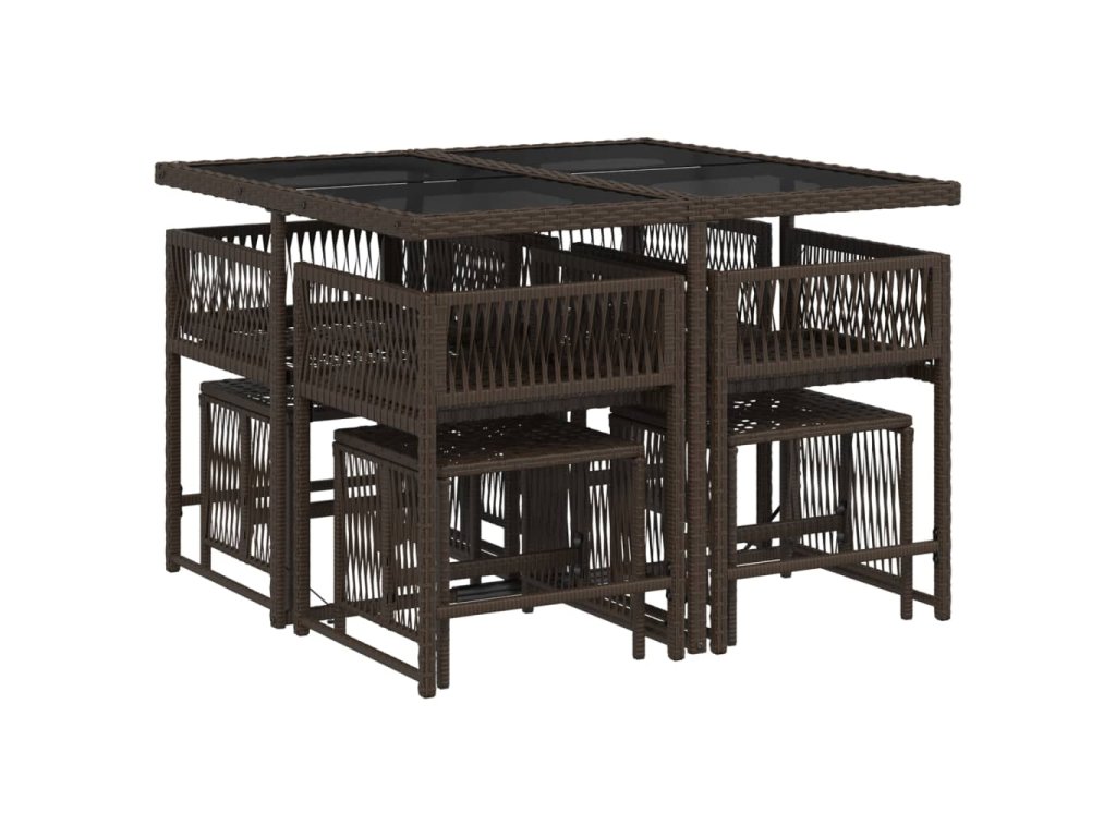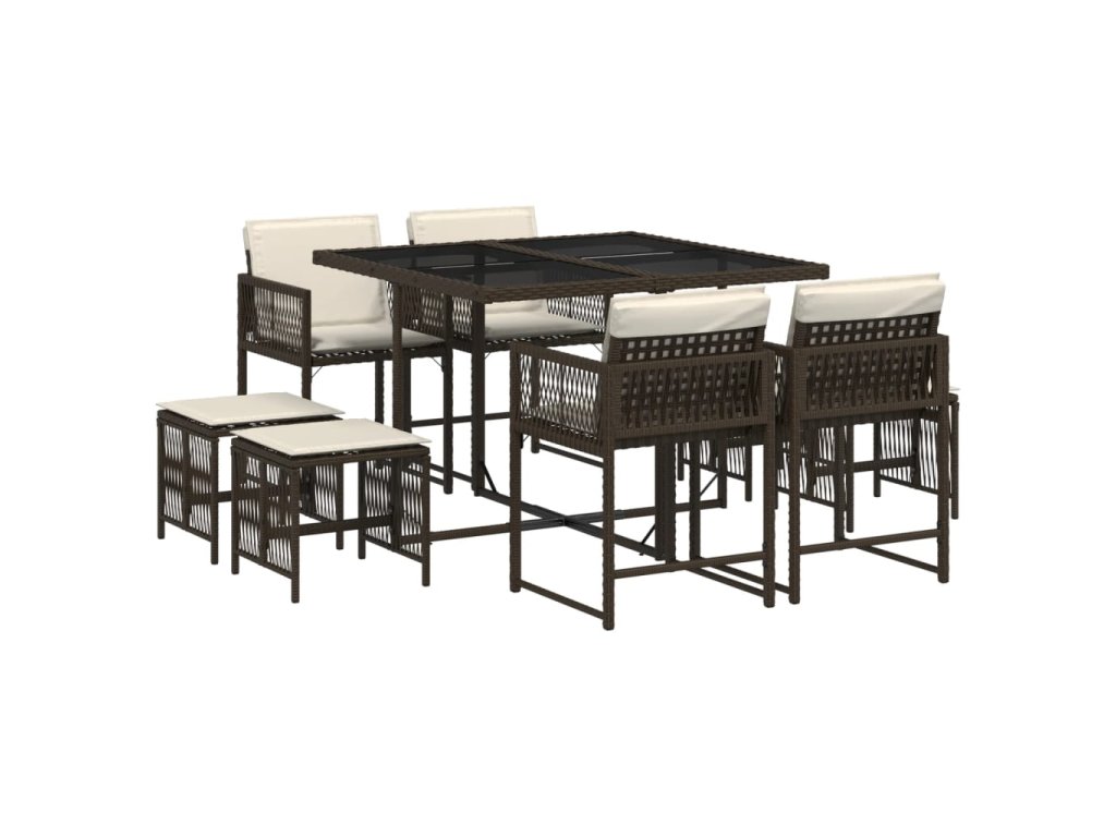9dílný zahradní jídelní set s poduškami hnědý polyratan 3211497